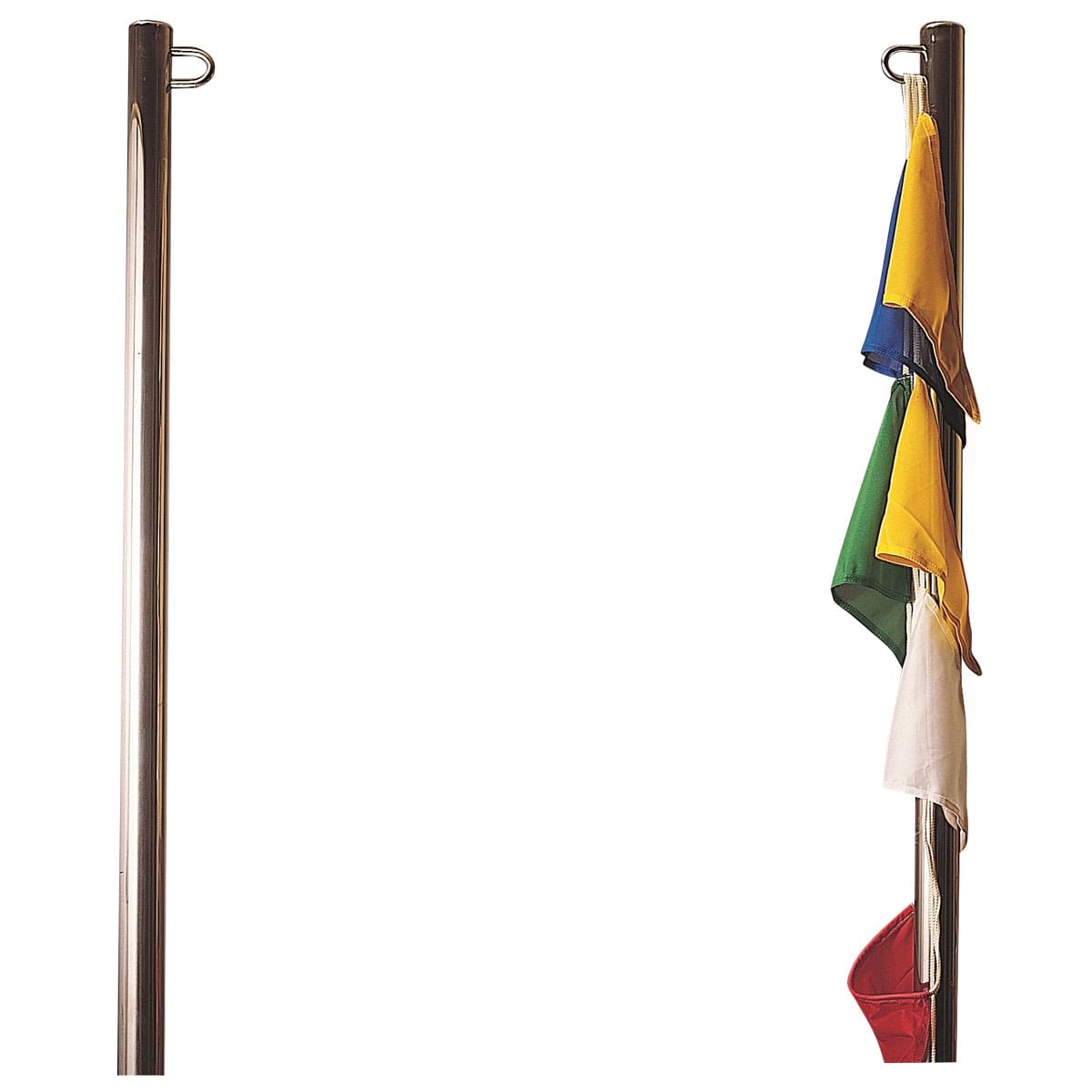 Zestaw nawrotowy Hayward do basenów sportowych. Proporce sygnalizują sportowcom, że zbliżają się do końca basenu i pomagają im w zawróceniu na czas podczas pływania na plecach. Montowany w odległości 5 metrów od startu i mety. Między słupkami zawieszana jest lina nawrotowa. Maksymalna długość naciągu liny wynosi 21 metrów. Słupki wykonane są ze stali nierdzewnej AISI 316 odpornej na korozję, promieniowanie UV i odczynniki chemiczne. Proporce wykonane są z PVC. Zestaw zawiera: Słupki: 4 szt. Kotwa z osłoną: 4 szt. Zestaw proporców: 2 szt.
