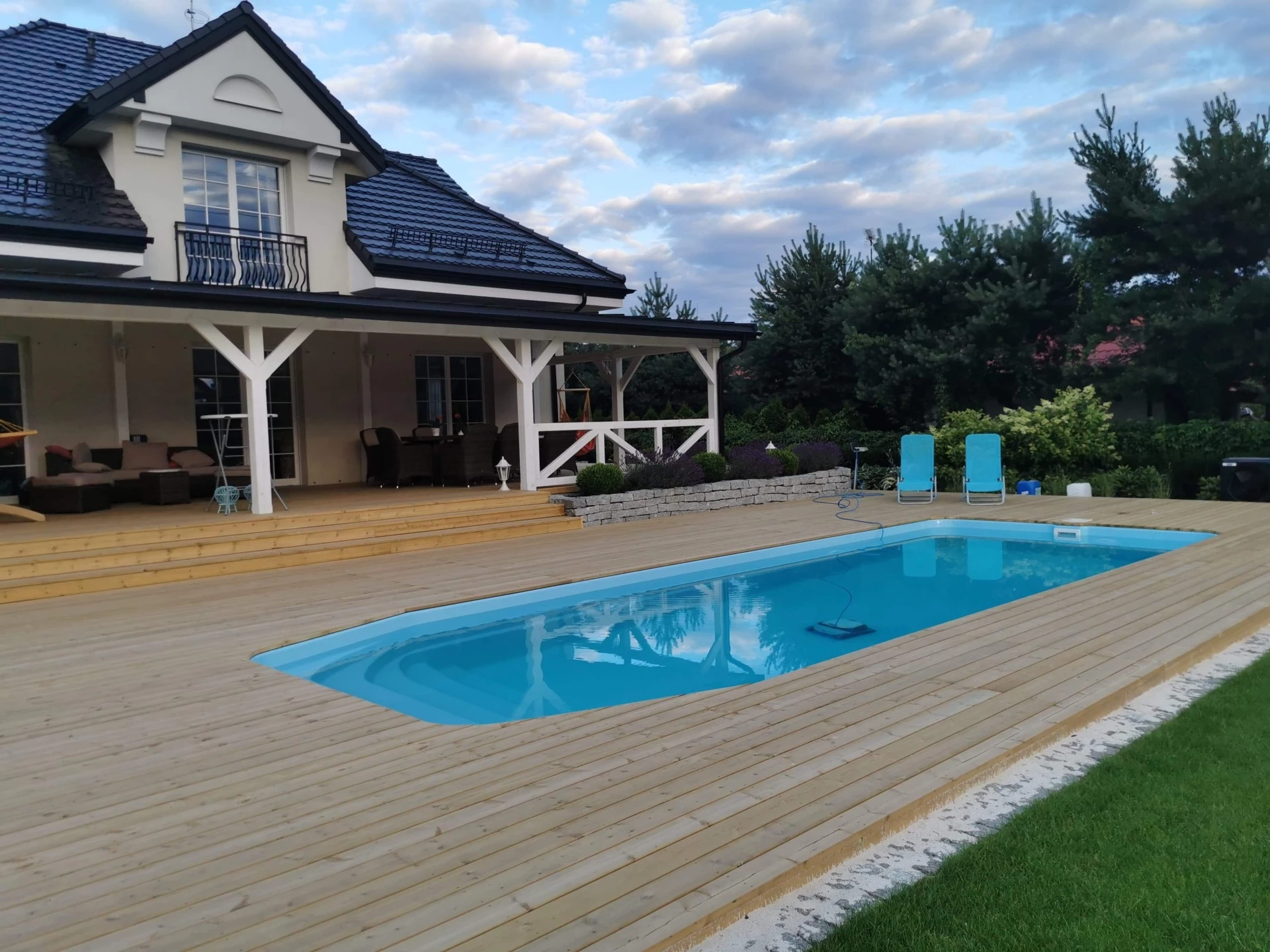 Basen Neo Line to rozwiązanie klasy premium do ogrodu i tarasu. Niecka wykonana jest z materiału kompozytowego z wykorzystaniem wysokiej jakości żywic winyloestrowych i zabezpieczona wielowarstwowym systemem: żelkot (odporny na promieniowanie UV, chlor i plamy), Barier Coat i Top Coat (podwójna ochrona przed wilgocią), pianka poliuretanowa (izolacja termiczna i dodatkowa wytrzymałość), metalowe wzmocnienia (stabilizują konstrukcję). Pięciostopniowe, antypoślizgowe schody na całej szerokości ułatwiają wejście i idealnie sprawdzają się podczas zabaw z dziećmi. Nie wymaga spuszczania wody na zimę i jest odporny na wszelkie warunki atmosferyczne. Wymiary: długość 950 cm, szerokość 360 cm, głębokość 155 cm Typ basenu: wkopany (zagłębiony)