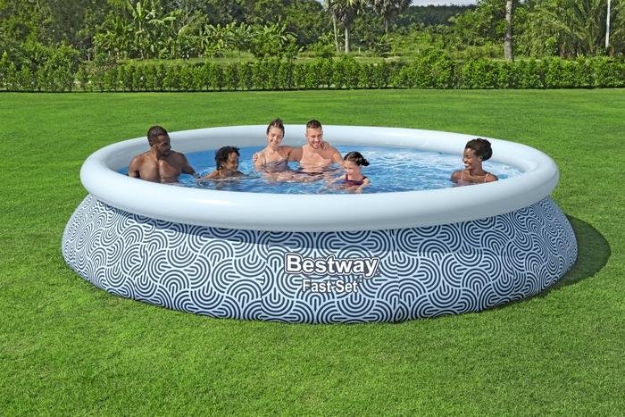Basen rozporowy Bestway 57372 jest przeznaczony do pływania i relaksu dla małej rodziny. Ze względu na niewielkie rozmiary i niewielką wagę możesz umieścić basen w ogródku, na tarasie lub zabrać ze sobą nad morze. Niecka basenu jest wykonana z wytrzymałego trójwarstwowego tworzywa PVC z nadmuchiwanym górnym kołnierzem. Basen ma również naturalnie wyglądający wiklinowy nadruk rattanowy, dzięki czemu jest pięknym dodatkiem do każdego podwórka. Zestaw zawiera pompę filtrującą pozwalającą na usuwanie wszelkich zanieczyszczeń, gwarantując utrzymanie czystości wody przez cały sezon kąpielowy. Rodzaj basenu: rozporowy dla dzieci Wymiary: średnica 457 cm, wysokość 107 cm Pojemność basenu (90%): 12 362 litry Pompa filtrująca: 2006 l/h Typ basenu: naziemny