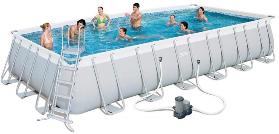 Basen stelażowy Bestway 56474 to prostokątny model, idealny do montażu w każdym ogrodzie lub na przydomowej przestrzeni. Niecka basenu została wykonana z trójwarstwowej wzmocnionej folii. Boczne ścianki z materiału TriTech, odporne na rozdarcia i promieniowanie UV, niezawodnie wytrzymują obciążenia związane z wagą i ruchem wody. System ClickConnect minimalizuje ryzyko uszkodzeń wynikających z kontaktu z metalem. Wnętrze niecki imituje niebieską mozaikę. W zestawie z basenem znajduje się pokrywa ochronna, drabinka, wymienny wkład filtracyjny oraz pompa wkładowa, która zapewnia czystość wody przez cały sezon kąpielowy. Wymiary: długość 732 cm, szerokość 366 cm, wysokość 132 cm Pojemność basenu (90%): 30045 litrów System filtracji: pompa wkładowa 9463 l/h Typ basenu: naziemny