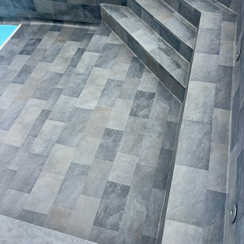 Folia basenowa Cefil Keramik Touch Darkstar o wzorze w postaci szarych płytek. Przeznaczona jest do hydroizolacji i wykładania wewnętrznej powierzchni niecki basenowej. Zewnętrzna warstwa folii posiada ochronną powłokę lakierniczą, która blokuje działanie bezpośrednich promieni UV, środków chemicznych i kosmetyków. Impregnacja antybakteryjna zabezpiecza powłokę przed powstawaniem pleśni i grzybów. Łatwa i szybka w montażu. Żywotność wynosi ponad 10 lat. Cena dotyczy 1 m². Rzeczywiste kolory produktów mogą się różnić od kolorów i odcieni przedstawionych na naszej stronie. Szerokość folii: 1.65 m Długość folii: 25 m Powierzchnia rolki: 41.25 m²