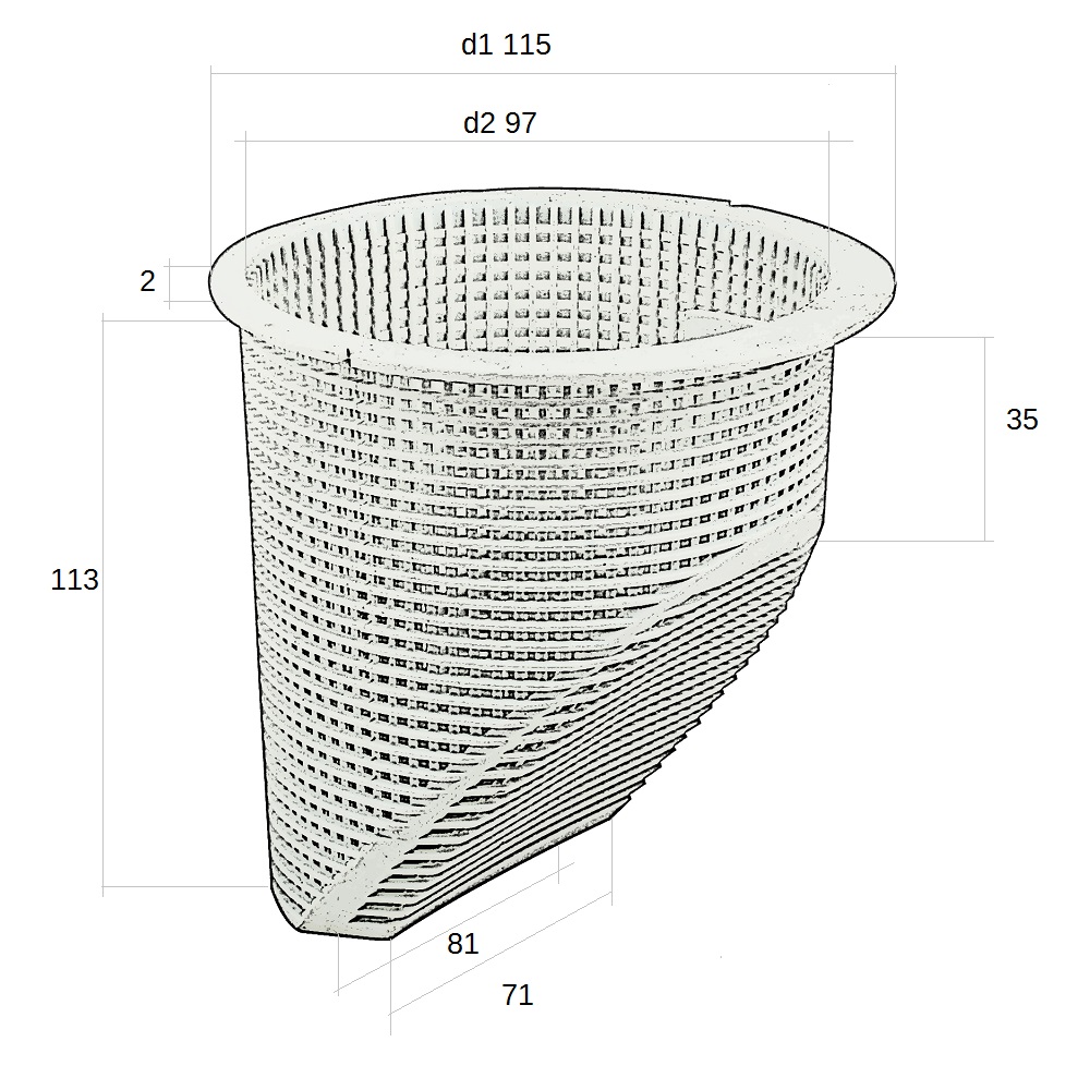 Koszyczek filtra wstępnego pompy Emaux AMU. Wymiary: 115х115 mm.