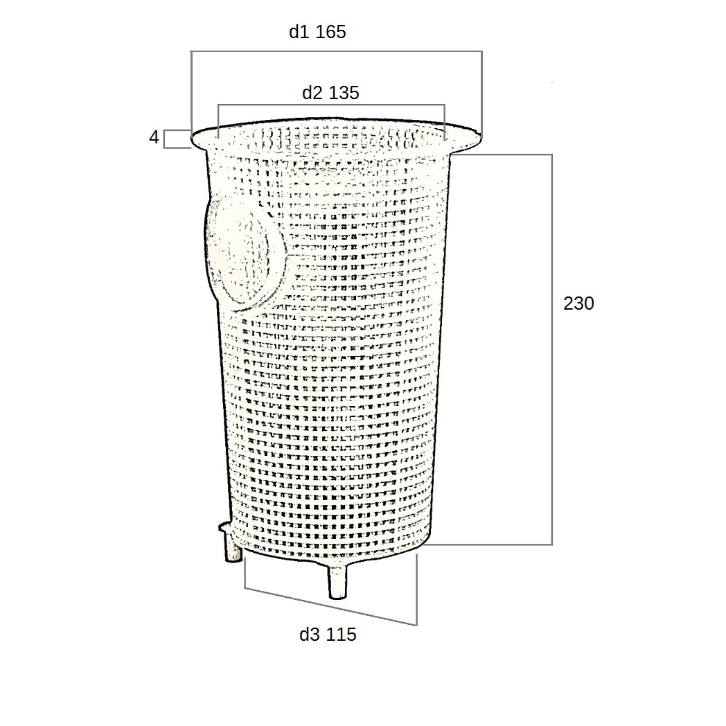 Koszyczek filtra wstępnego pompy Emaux SB. Wymiary: 234 х 165 mm.