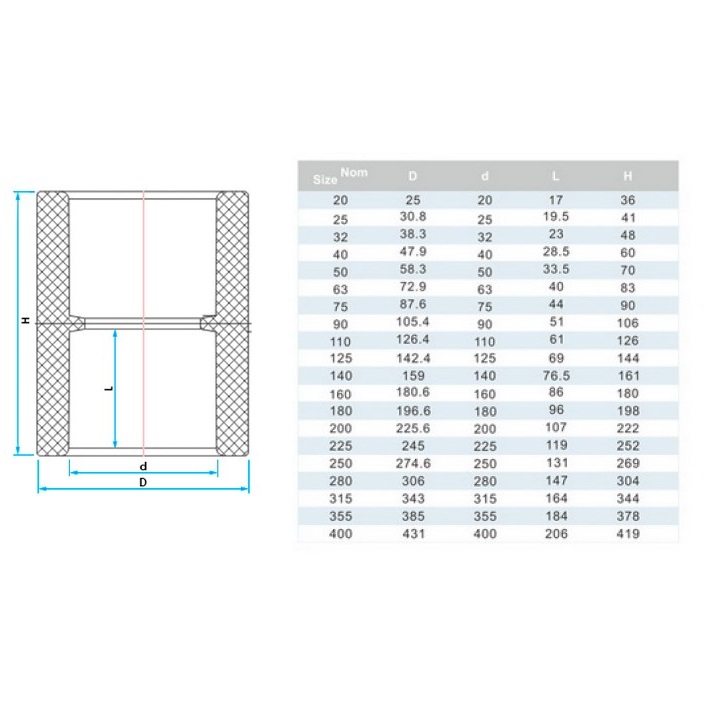 Mufa łączeniowa PVC Era US00350 wykonana z polichlorku winylu PVC-U. Nadaje się do transportu płynów o max. temperaturze do 60°C. Wraz ze wzrostem temperatury cieczy roboczej ciśnienie graniczne spada. Podana cena dotyczy jednej sztuki. Połączenie: klejowe Kolor: szary