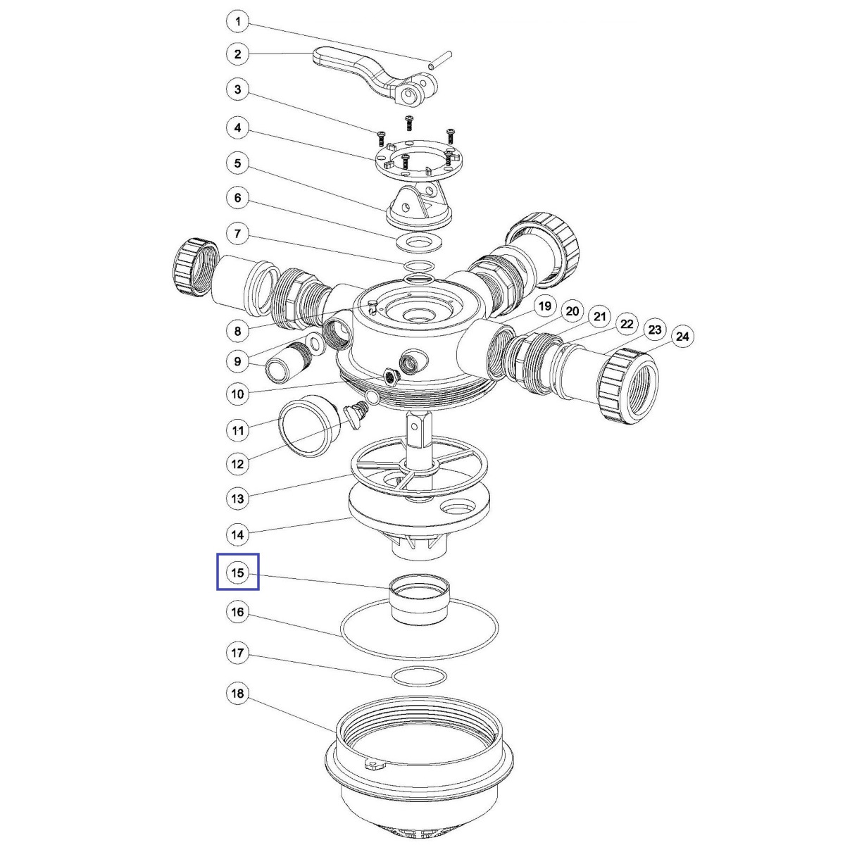 Mufa rotora Emaux do zaworu 4-pozycyjnego MPV-05 1.5″ 1013039.