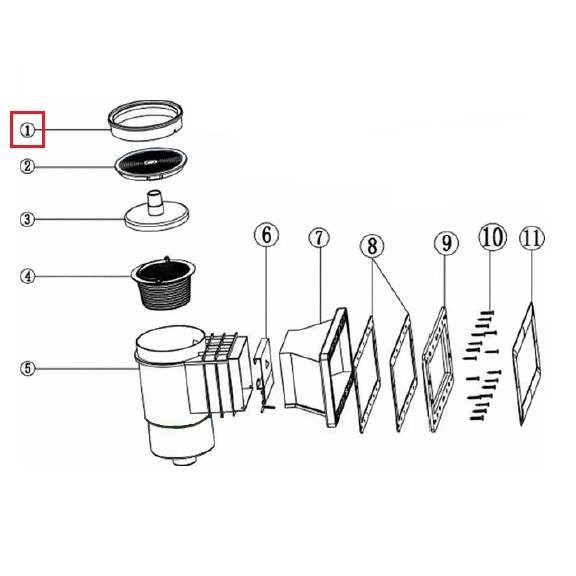 Pierścień górnej pokrywy Emaux do skimmerów serii EM0010 i EM0020.