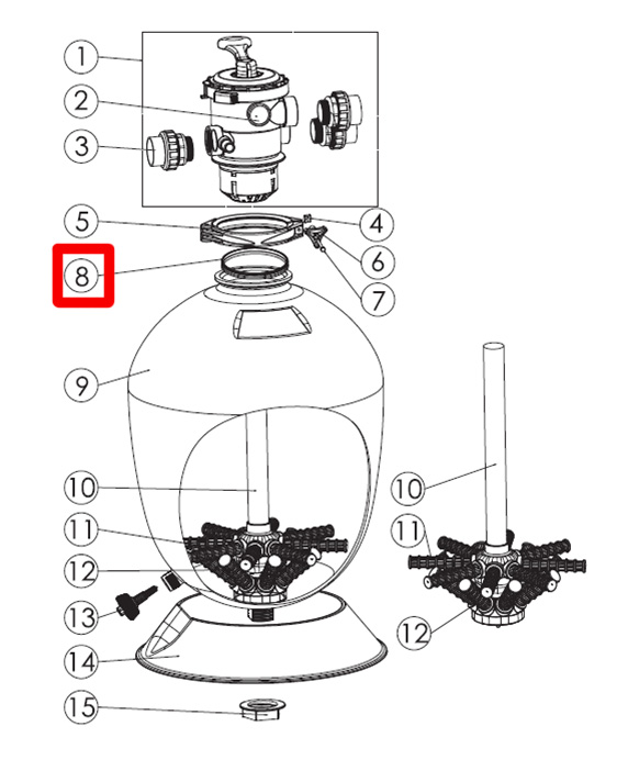 Pierścień uszczelniający do zaworu sześciodrogowego filtrów Emaux serii T. Nadaje się do filtrów serii T400, T500, T600, T700, T600B, T700B.