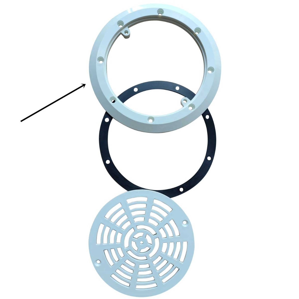 Przednia część kołnierza Emaux EM2837. Artykuł: 1050196 Osobno sprzedawane są: kratka odpływu dennego i uszczelka kołnierza.