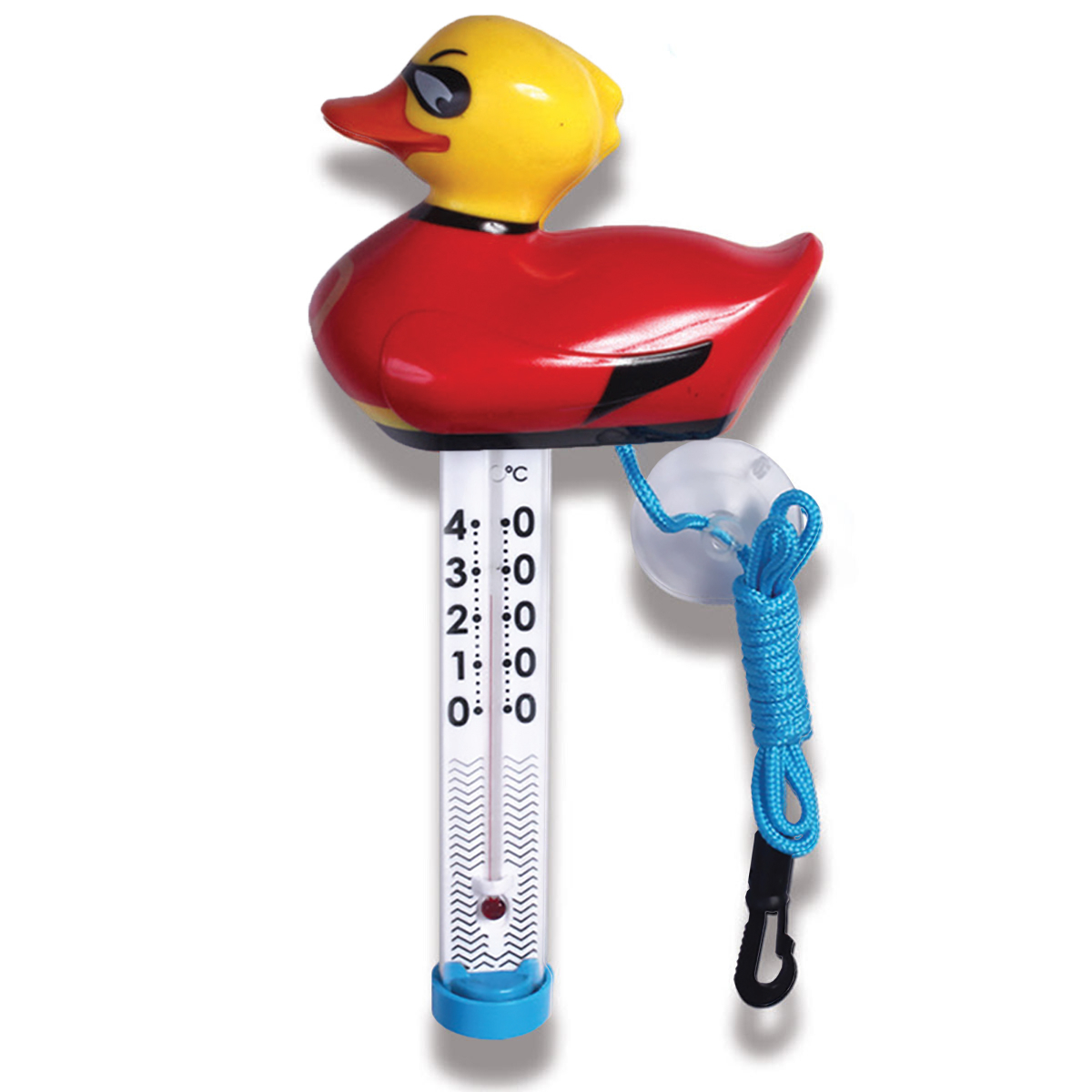 Termometr dziecięcy Kokido TM11DIS Amicables Nunu do basenów. Wykonany z nieszkodliwego polimeru, nie zawiera szkła, rtęci ani ostrych części. Posiada dwie skale – Celsjusza i Fahrenheita. Wyposażony w pływający sznurek w celu mocowania do ściany basenu.
