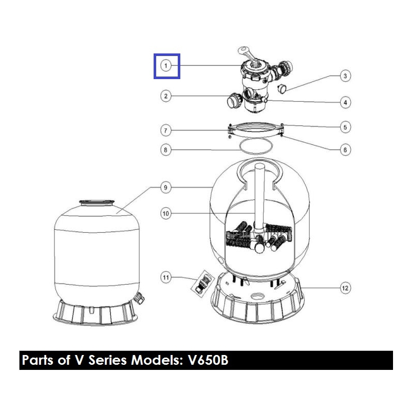 Zawór sześciodrogowy Emaux MPV02 górny wykonany jest z tworzywa ABS wytrzymałego i odpornego na promieniowanie UV. Zawór nadaje się do filtrów serii V.
