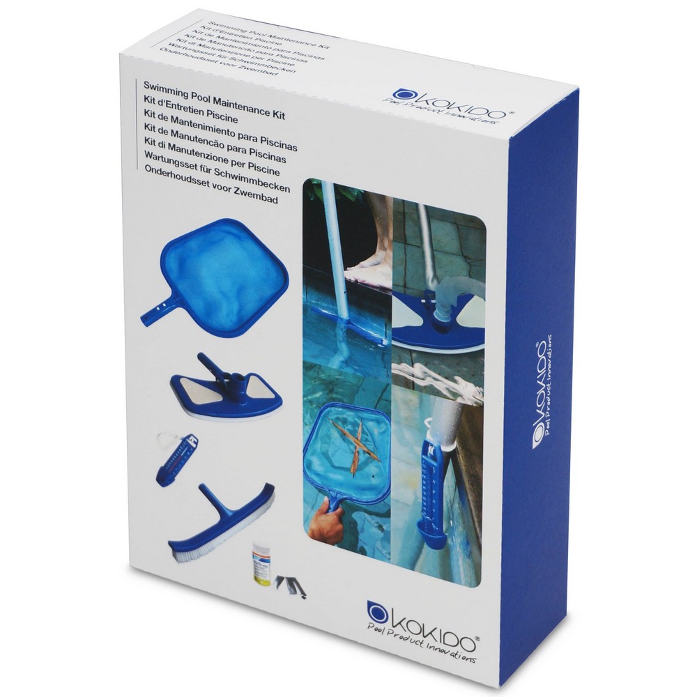 Zestaw do czyszczenia basenu Kokido Classic K112CBX/3W 5 w 1. Zestaw zawiera: Szczotka denna Kokido K023 do odkurzacza Szczotka ścienna Kokido 45 cm Siatka powierzchniowa Kokido K026 bez uchwytu 3-częściowe paski testowe Termometr Kokido K049